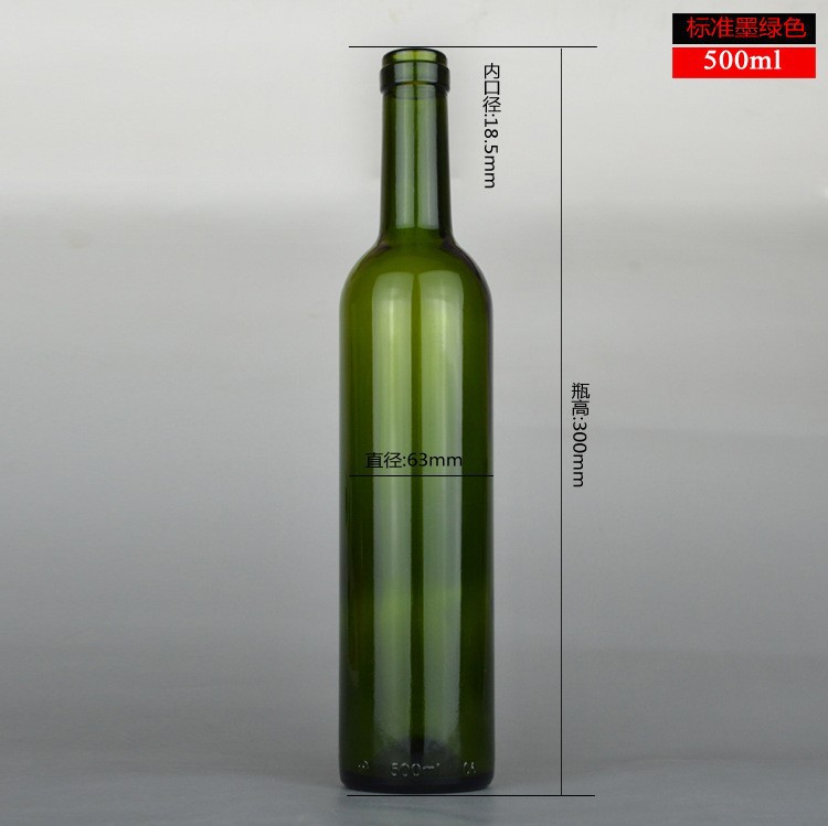 500ml 標準墨綠(lǜ)色紅酒瓶原色玻璃瓶